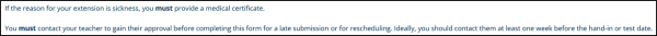 For medical conditions, students must provide a medical certificate as part of their application as shown here; if they do not, they will not have an extension. This is non-negotiable on the school’s part.