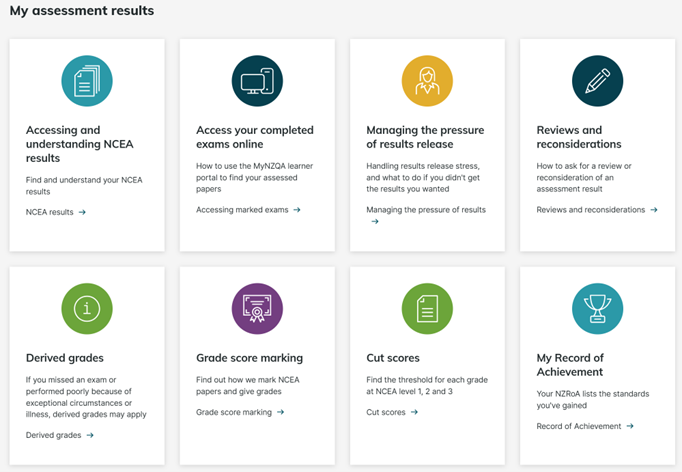 There have been some big and good changes to the way in which students can see their results online on NZQA. Much more good summative information is now available by students clicking on this link and looking through the changes Guide to online results - NZQA.