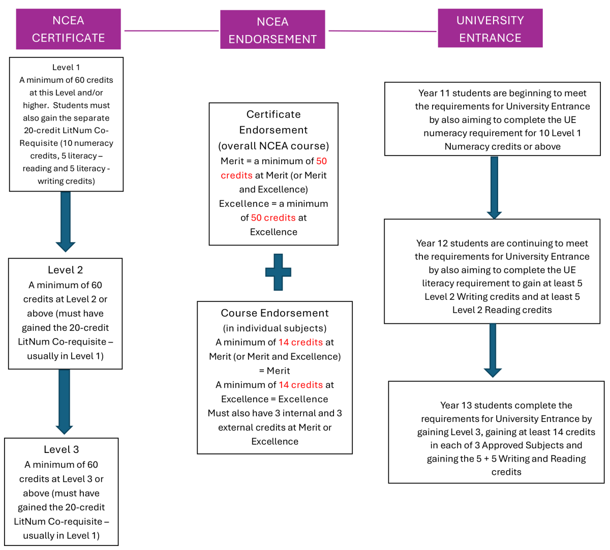 Students who study Level 3 subjects this year count their Level 3 credits towards both the Level 2 certificate and the Level 3 certificate. To gain a course endorsement in a Level 3 subject, credits must be gained this year, they cannot be added to next year when in Year 13.