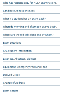 You are strongly encouraged to check out the NCEA Examination FAQs section as there is a lot of really important information provided.
