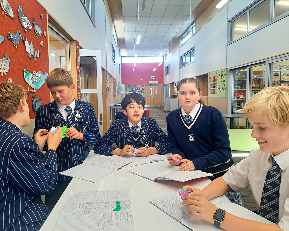 As beginning of year assessments draw to a close, targeted learning in Mathematics is now well underway across the Preparatory School. In one Year 8 class this week, students have been exploring number properties, with a particular focus on building confidence with positive and negative integers. To complement this, students took on a creative mathematical challenge: constructing their own hexaflexagon – a folded geometric paper model that can be flexed to reveal multiple hidden faces, offering an engaging way to engage with patterns. Its construction reinforces mathematical thinking by requiring careful measurement, symmetry, sequencing, and an understanding of how shapes transform.
