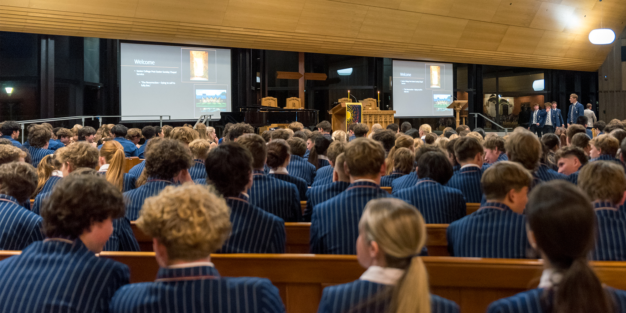 Senior College Chapel for Term 1 was held after Easter this year due to Easter being earlier than normal. The attendance from the students was high, with a number of friends and family joining them. Technical problems at the start caused some nervous energy, but the students were overwhelmingly understanding and sang the first verse of Amazing Grace without the words on the screen, in outstanding voice and enthusiasm.