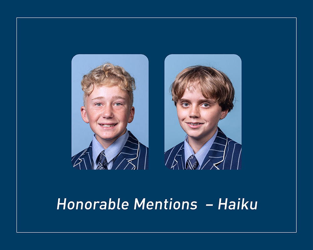 In the Vancouver Invitational Haiku Competition 2025, Ashton Harris (Year 9) with in the park, and Alfie Swain (Year 10) with late nights, gained Honourable mentions.