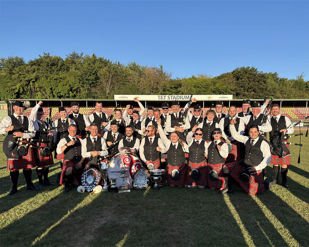 PIPE BAND – At the 2026 National Pipe Band Championships, the Canterbury Caledonian Pipe Band secured the Grade 1 title. Old Collegians comprise more than 65 per cent of the band, including Pipe Major Piers Dover (OC 2013) and Drum Sergeant Michael Jenkins (OC 2013). Other Old Collegians in the band include Kate Booker (OC 2017), Marcella Bragg (OC 2019), Kirby Douglas (OC 2013), Jamie Hawke (OC 2006), Richard Hawke (OC 1980), Harry Justice (OC 2024), Aaron Mitchell (OC 2013), Dan Moir (OC 2007), Louis Newman (OC 2018), Lucas Paterson (OC 2024), Josh Smith (OC 2014), Rebekah Weir (OC 2017), and Alex Wilson (OC 2016).